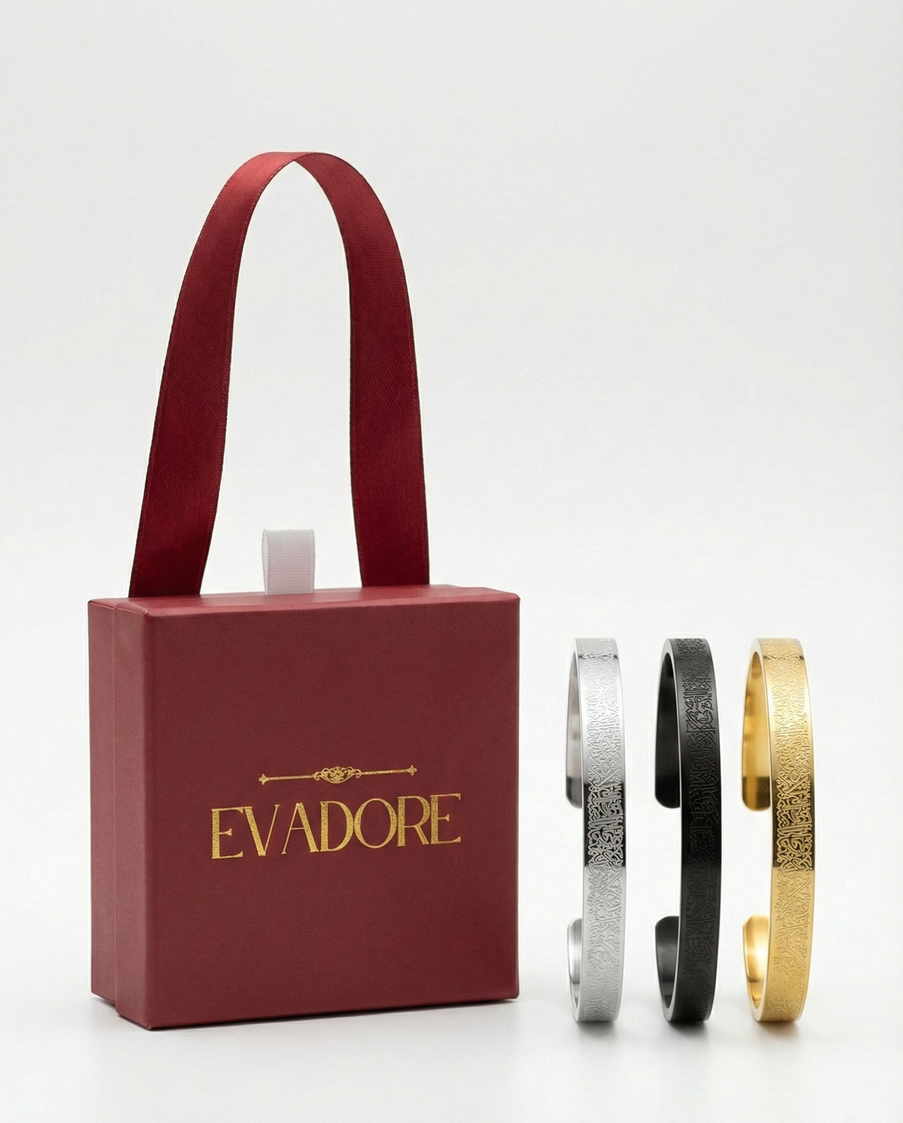 Evadore koleksiyonunun en özel parçalarından biri olan bu bileklik, Kur’an-ı Kerim’in en güçlü ayetlerinden Ayet-el Kürsi’yi estetik ve anlamlı bir tasarımla bileğinize taşıyor.